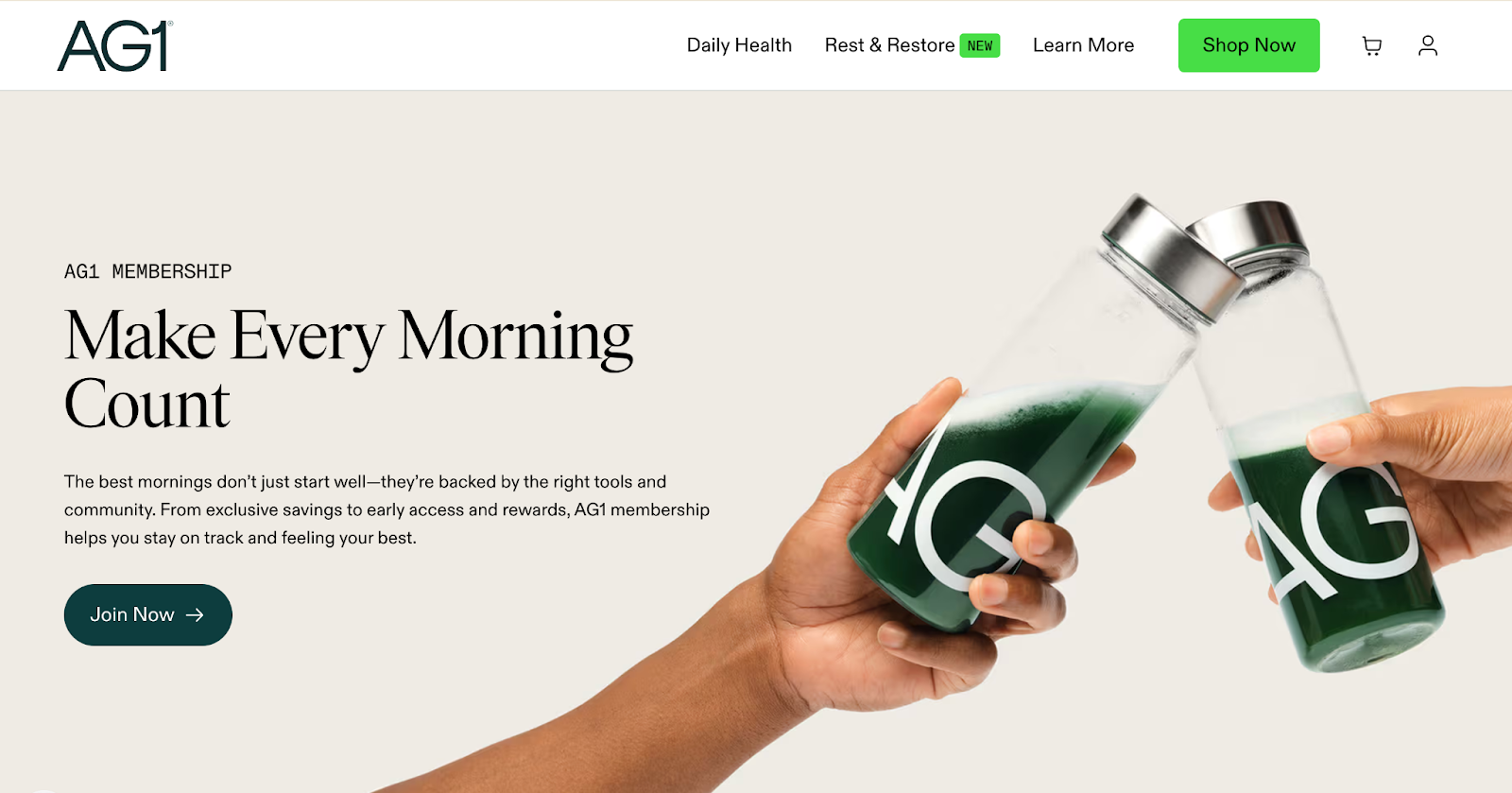 Athletic Greens has built its entire business model around subscriptions. Its AG1 product ships automatically every month, supported by messaging that emphasizes consistency in health routines.