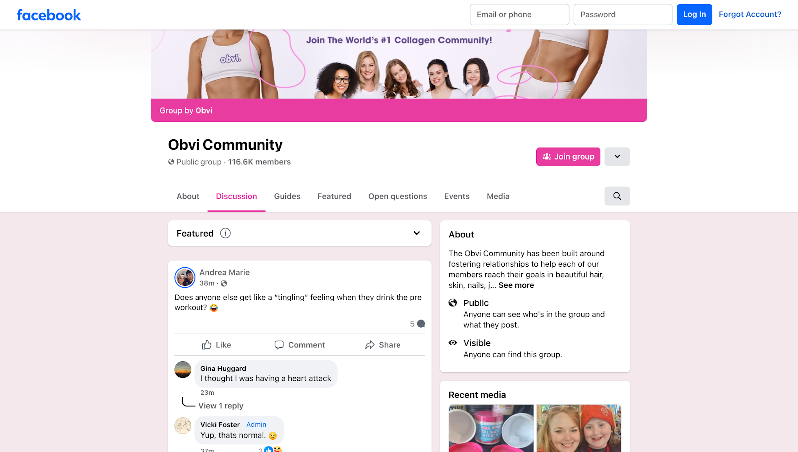 Obvi’s Facebook community does exactly this. With 116K shoppers and growing, people who love the Obvi products can come to the page to discuss their weight loss journeys, recipes, favorite flavors and more.