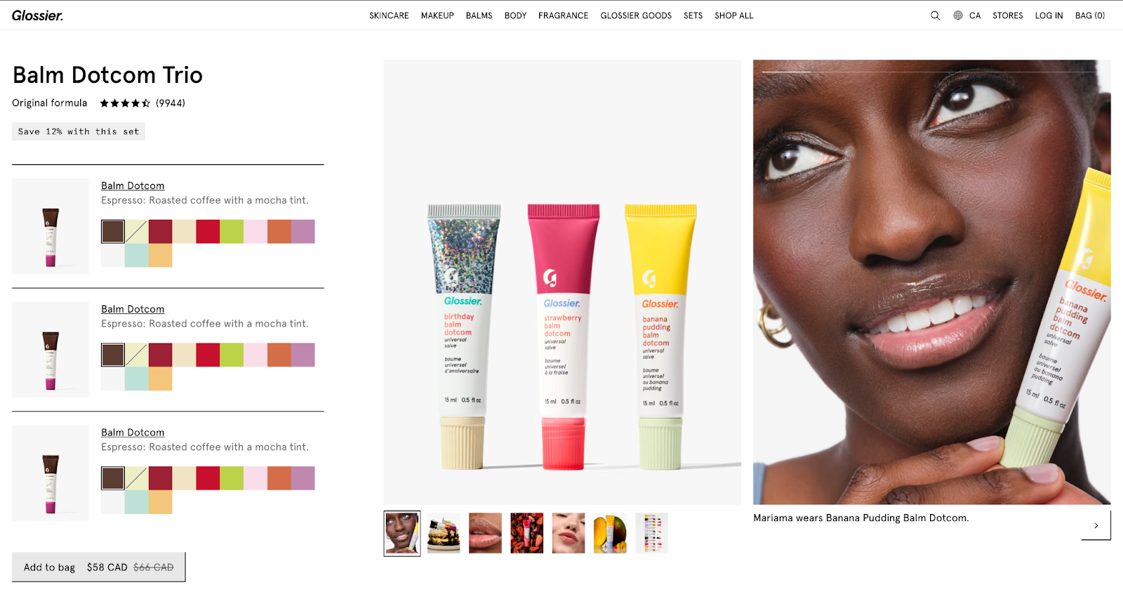 For example, Glossier’s Balm Dotcom bundle allows customers to purchase three lip balms at once, with the option to choose different scents. This eliminates the hassle of remembering to reorder every few weeks while ensuring the customer stays stocked for an entire season.