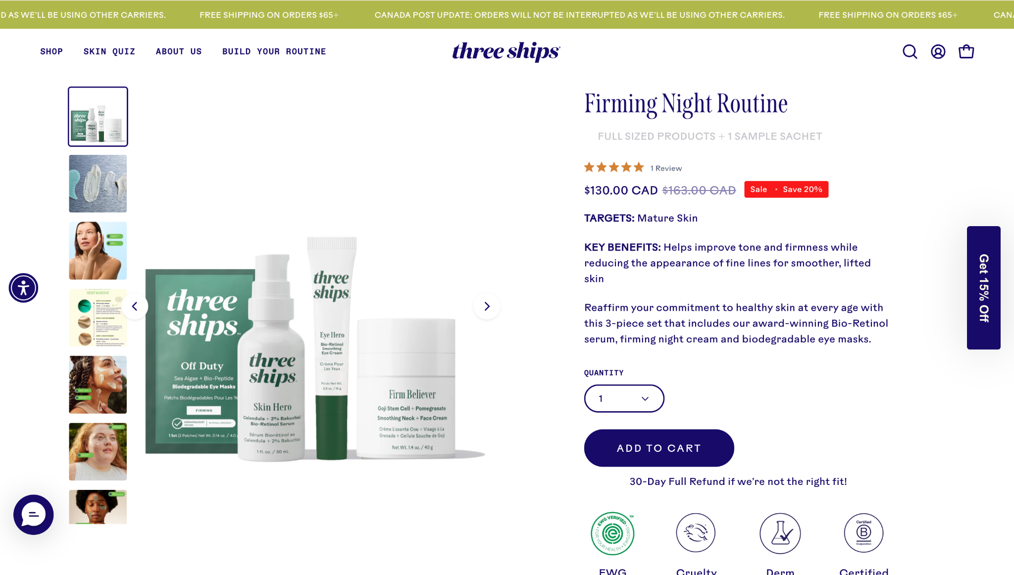 Three Ships has a ton of these types of routines on its ecommerce website, making it easy for shoppers to find a bundle meant for a specific use case.