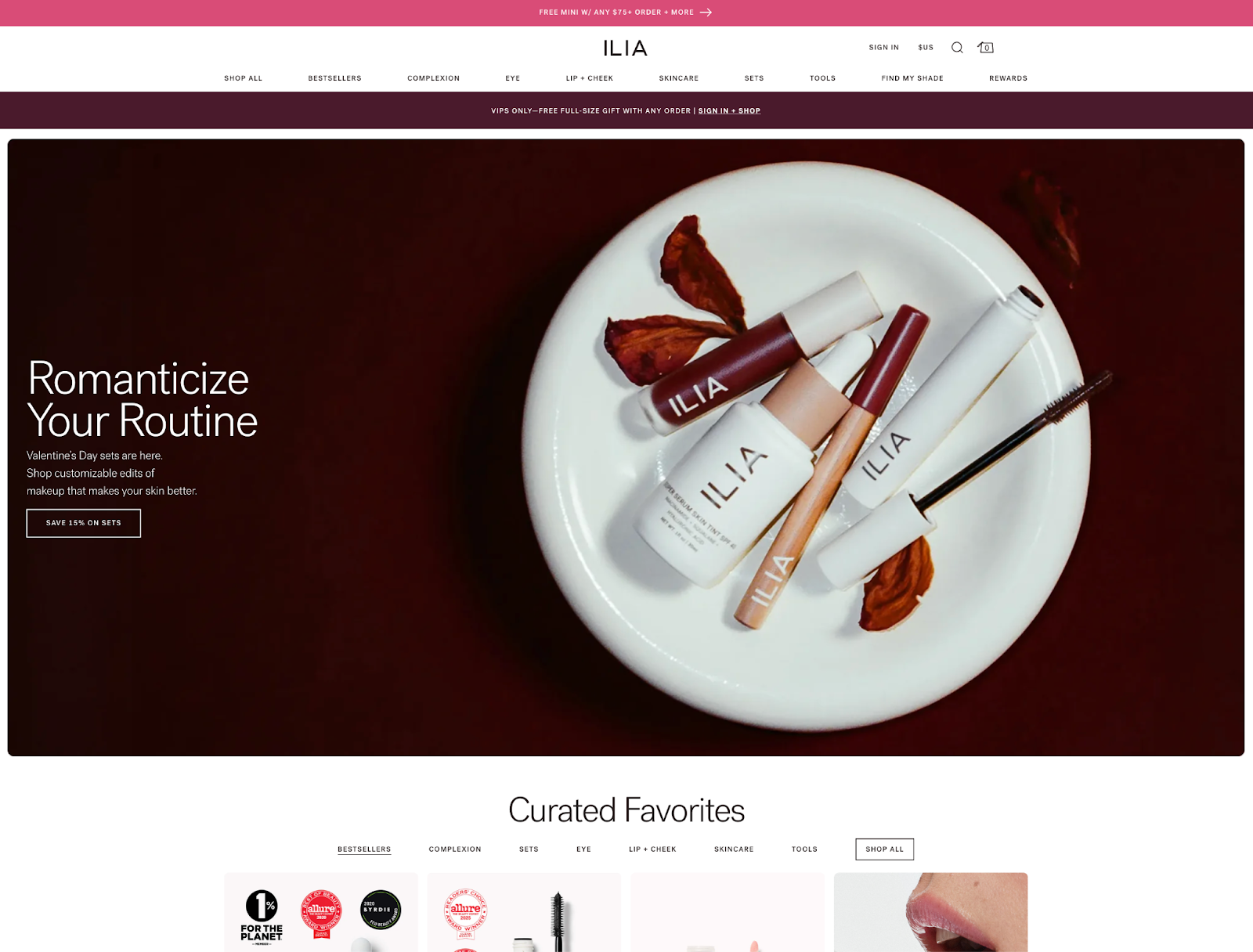 Ilia Beauty didn’t create net-new bundles for Valentine’s Day, but they did strategically promote their existing bundles as Valentine’s Day gifts right on their homepage.