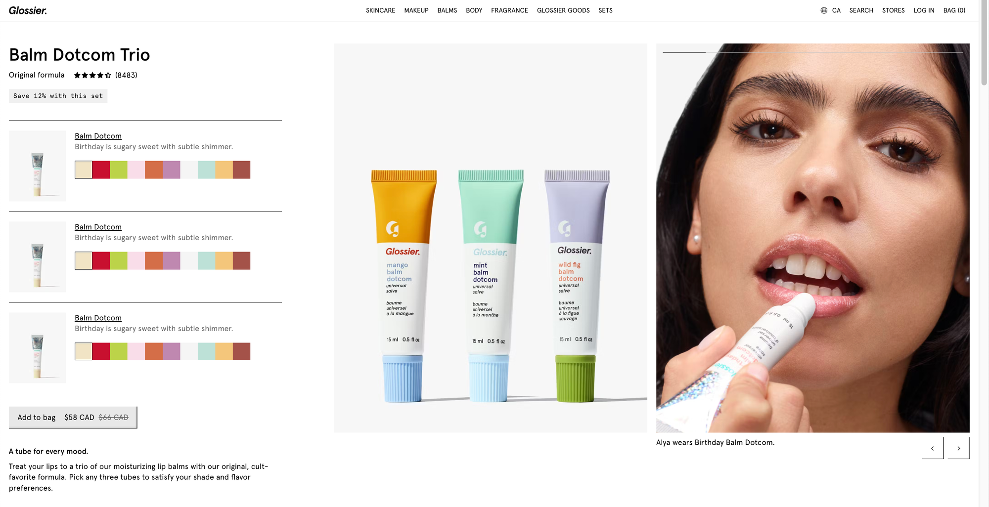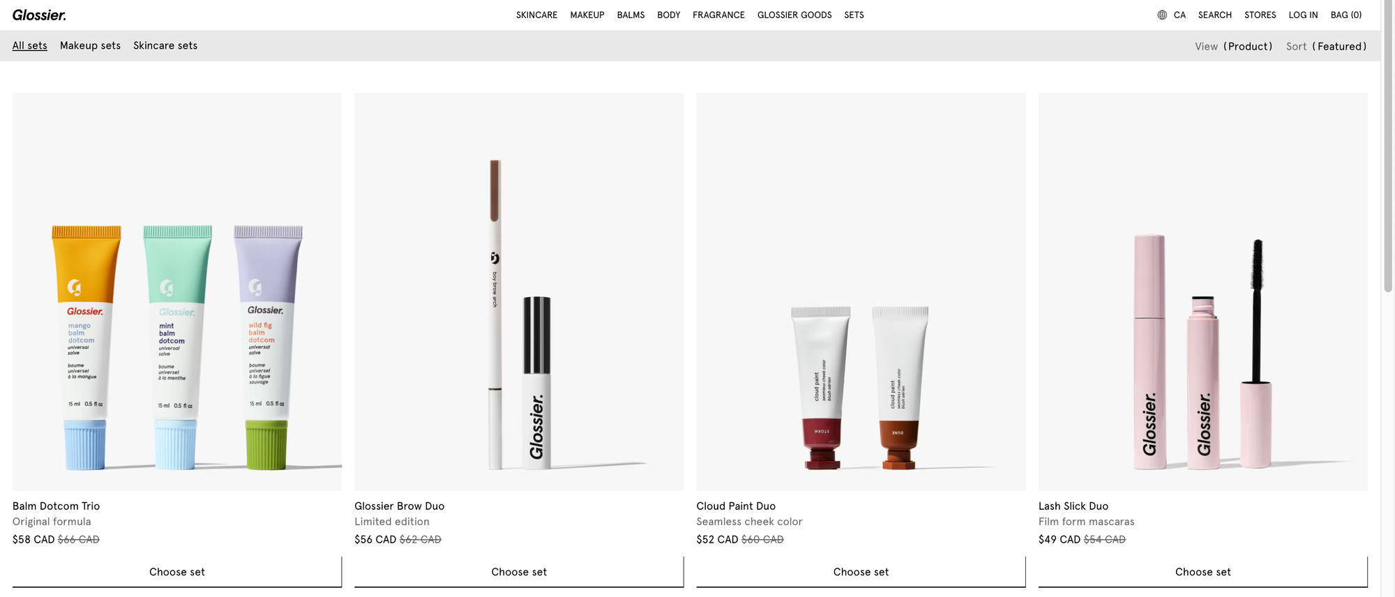 Glossier, like many beauty brands, offers a wide range of shades for customers to choose from. This is why Glossier often uses mix-and-match bundles.